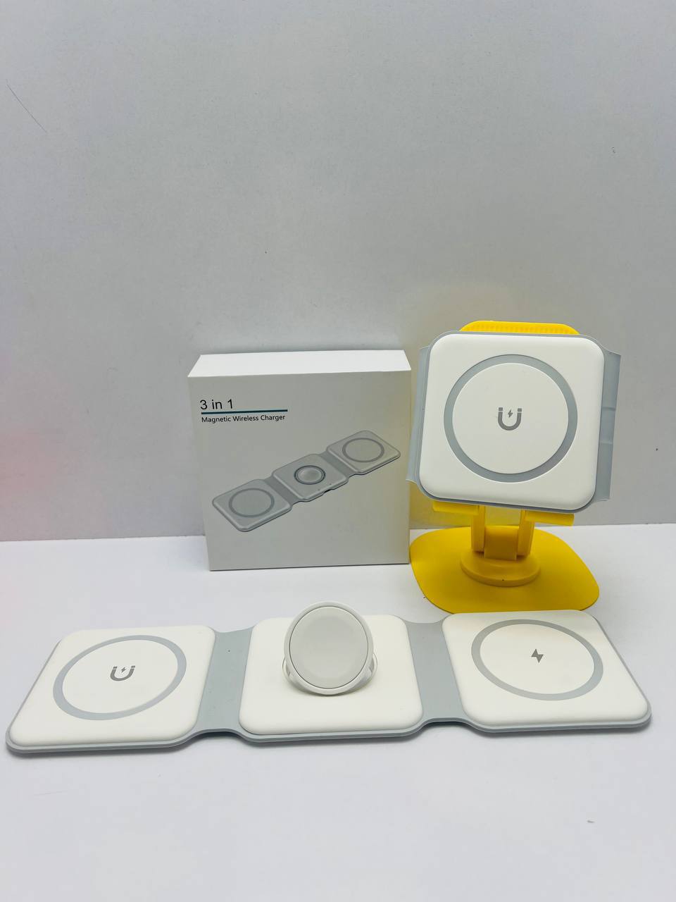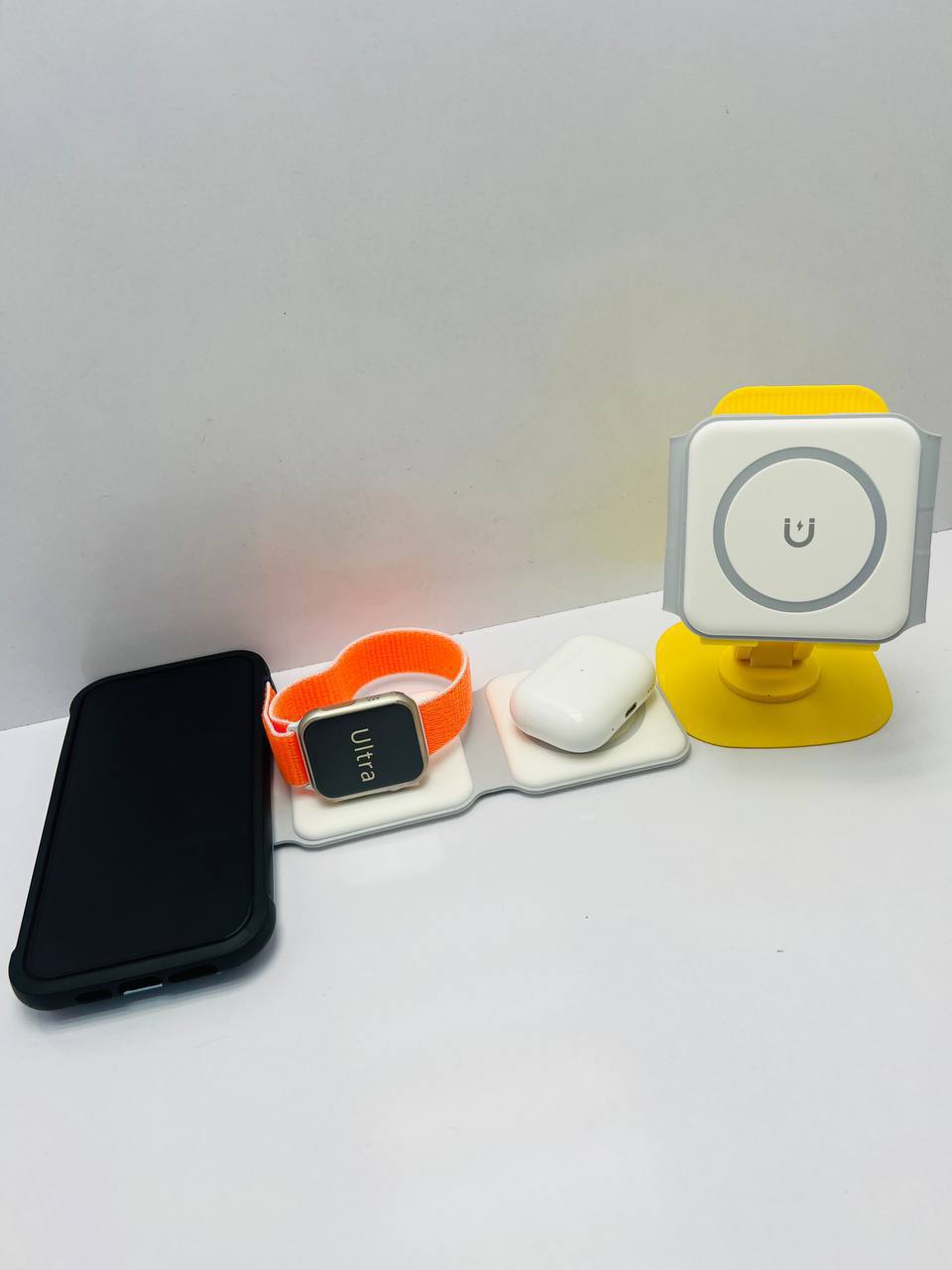 استند وایرلس 3 کاره مدل تاشو با سه ناحیه شارژ مجزا، امکان شارژ هم‌زمان موبایل، ساعت هوشمند و ایرپاد را فقط با یک کابل و آداپتور فراهم می‌کند. طراحی تاشو و جمع‌وجور، آن را برای استفاده روی میز کار، کنار تخت و حتی همراه بردن در سفر به گزینه‌ای بسیار کاربردی و کم‌جا تبدیل کرده است.
