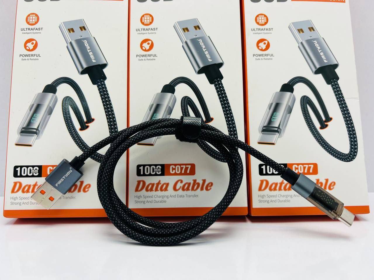کابل اورجینالLCD دار مدل:c077 تایپ سی سرعت شارژ عالی دیتا دار کنفی سر فلزی